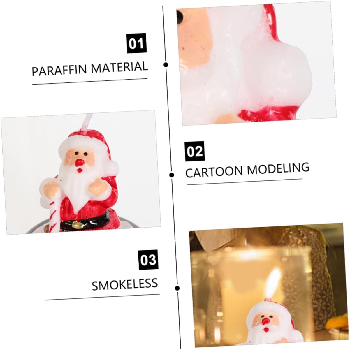 - Christmas smokeless candle: Expertly refined with paraffin wax, each Santa tealight promises clean and lasting light.